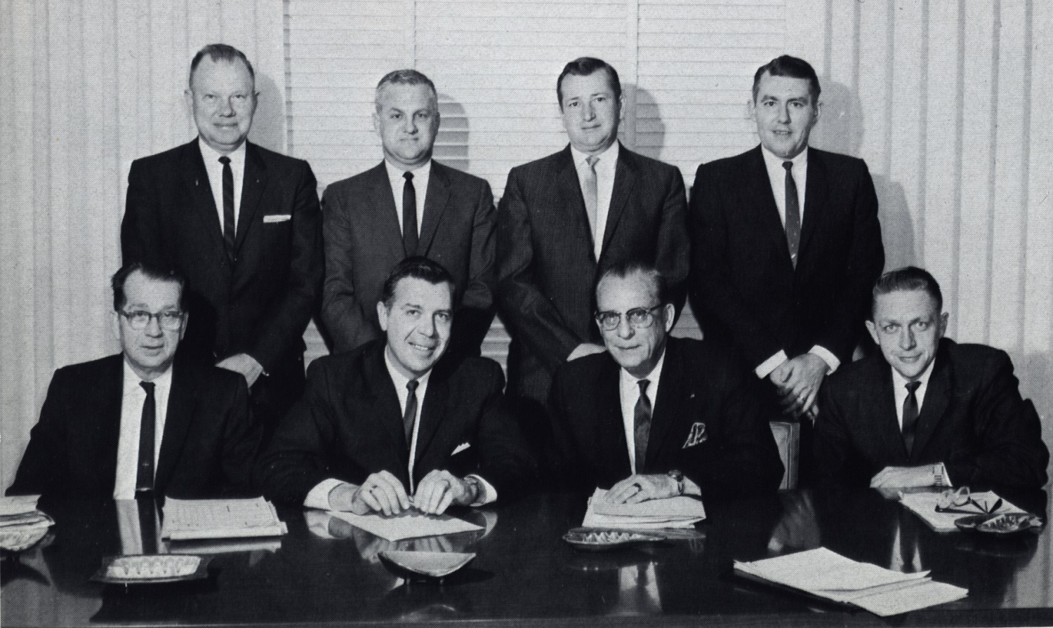 Seated Left to Right: T. Myers, Secretary; R. Bergren, President; L.P. Crawl, Superintendent; R. Walker. Standing: T. Peters, J. Giles, T. Leahy, E. Angulo. |