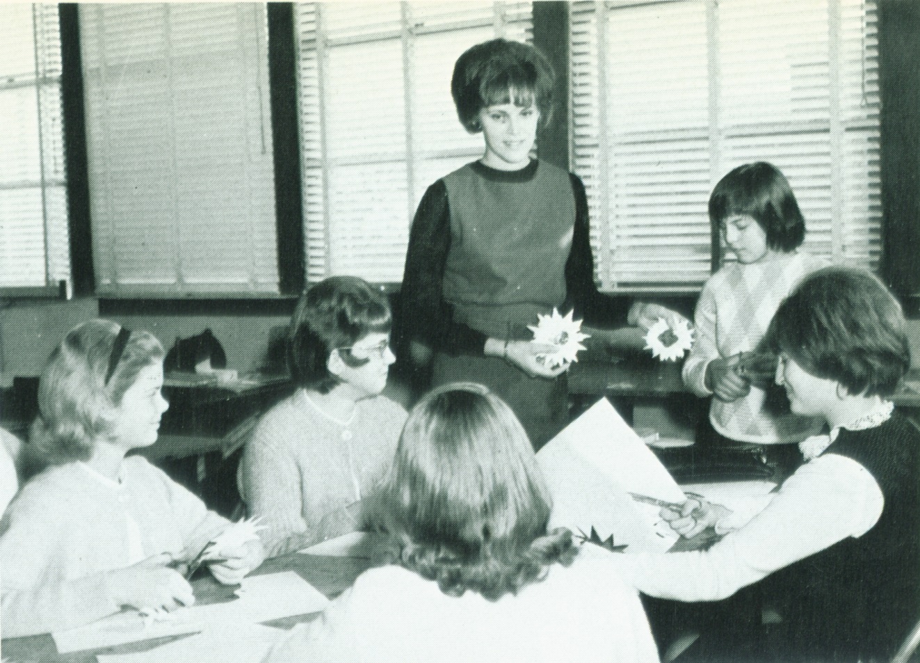 These girls in Miss Miletichs Art Class are making decorations for the Christmas Tree in the front hall. |