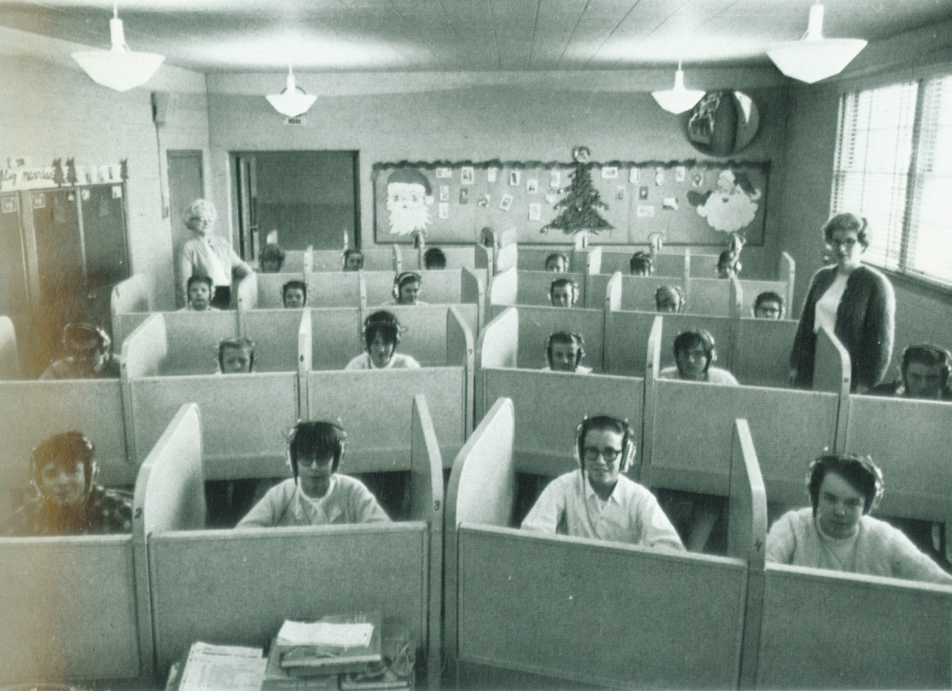 This is a representative group of the 265 or more students who study Spanish the the modern, well equipped laboratory. |