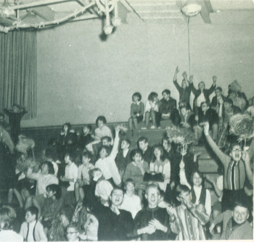 Pep Rally. [I recognise Scott Dugan far left bottom.] |