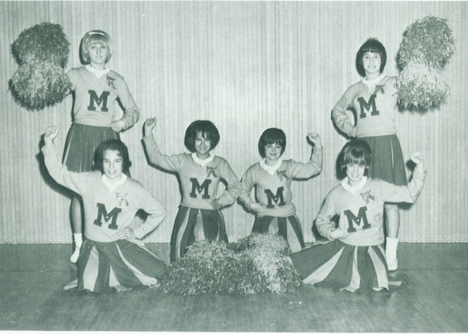 Cheerleaders help add to the school and Team Spirit. [Vickie Babe and Rhonda Pauling are two of the cheerleaders pictured here.] |