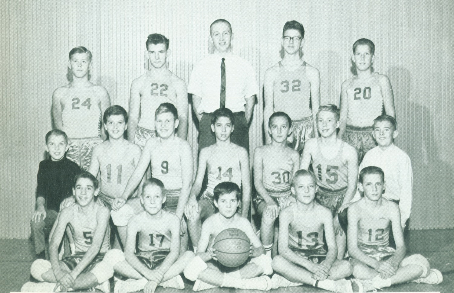 TOP ROW: Dave Fehse, Don Fehse, Jack Lonkar, Bob Porter, Dan Kelly, Ed Lontz, and Kyle Miller. BOTTOM ROW: Rod Maravilla, Martin Murrin, Carl Gjeldum, Mr. Bergdolt, Jim Sonntag, Dave Hollingsworth, and Martin Lane. |