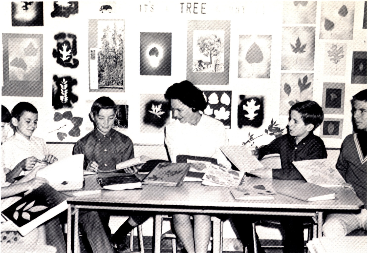 Science -- 8th Grade, The students of 8VII display their leaf collections as Mrs. Duvall looks on. Left to Right: Myma Van DerVeen, Edith Marich, John Swanson, Dan Rajkovitch, Mrs Duvall, Tom DeBoer, and Terry Courtright. |