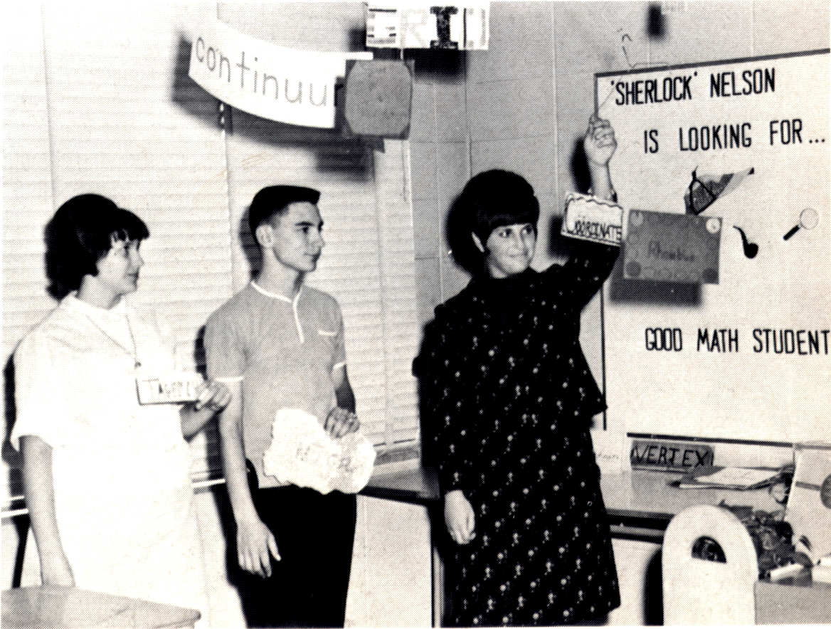 MEMORIAL JUNIOR HIGH 1967 - Spanish & Math7VII Mrs. Lockwood | 7VIII Mr. Long | 7IX Mr. Swendsen | Science | 8III and 7V and 8VIII | Spanish & Math scan | Geography Class | Art Class & Sewing | Gym Class Outdoors | Cheerleaders | Basketball |