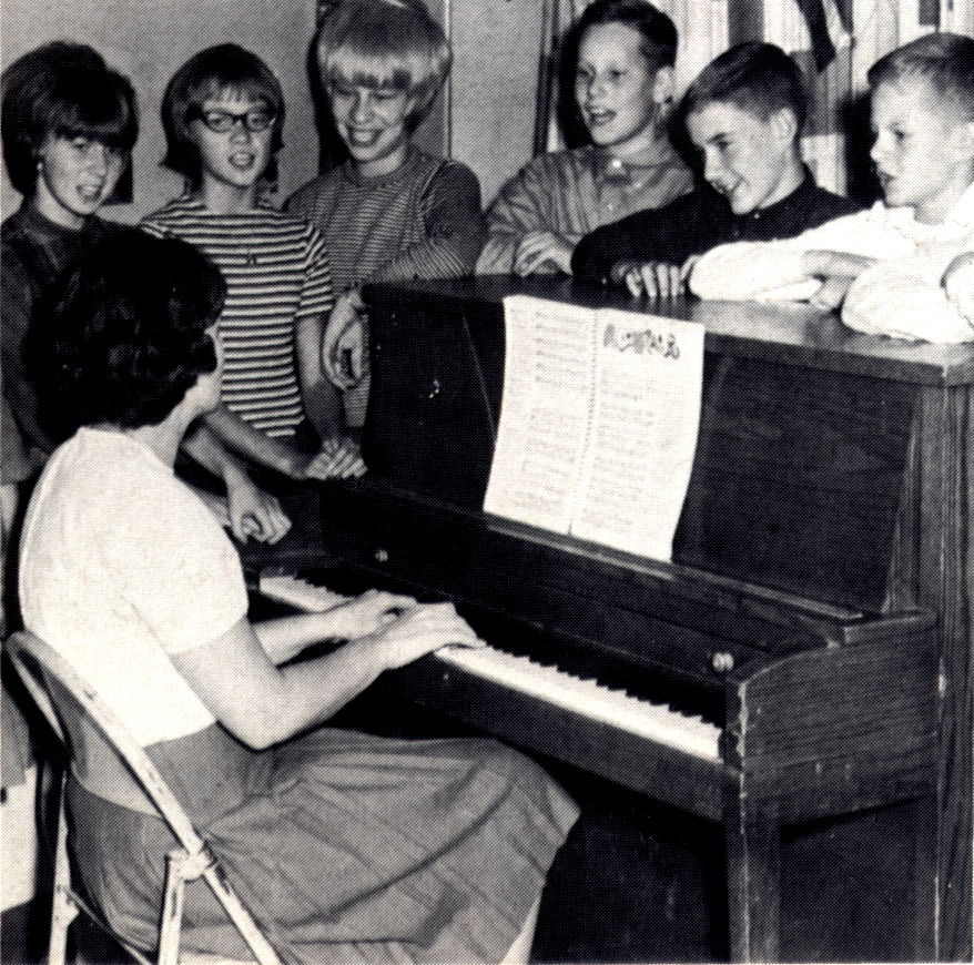 The piano and voices are blended together as Miss Smith and some of her students render a song for the rest of the class. |