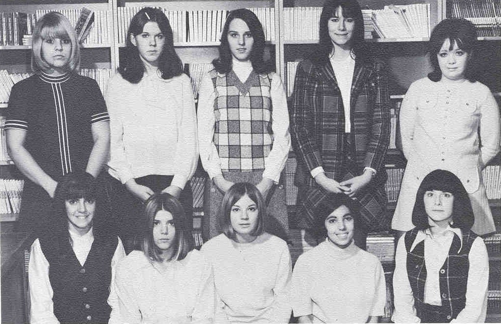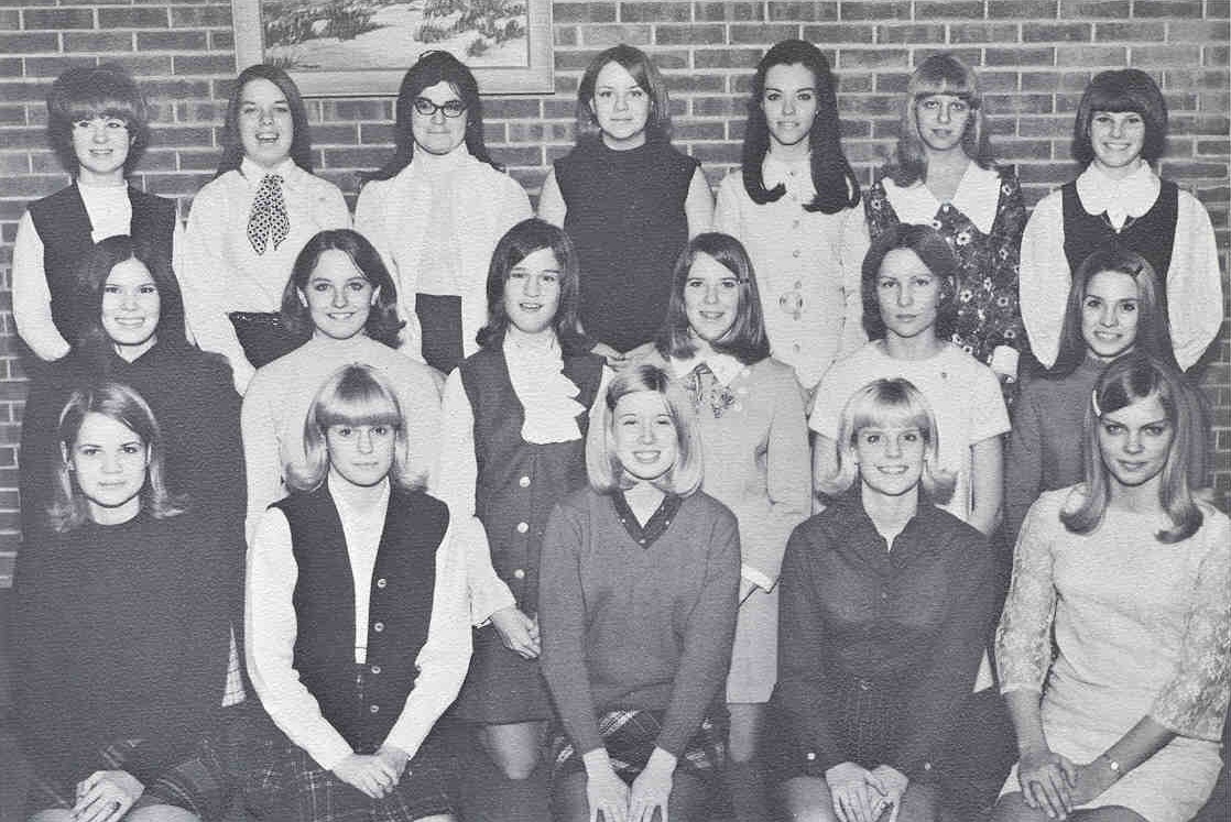 Row 1: Sherri Evans, Sue Dombrowski, Peggy Jensen, Joyce Sausaman, Sue Bethman.