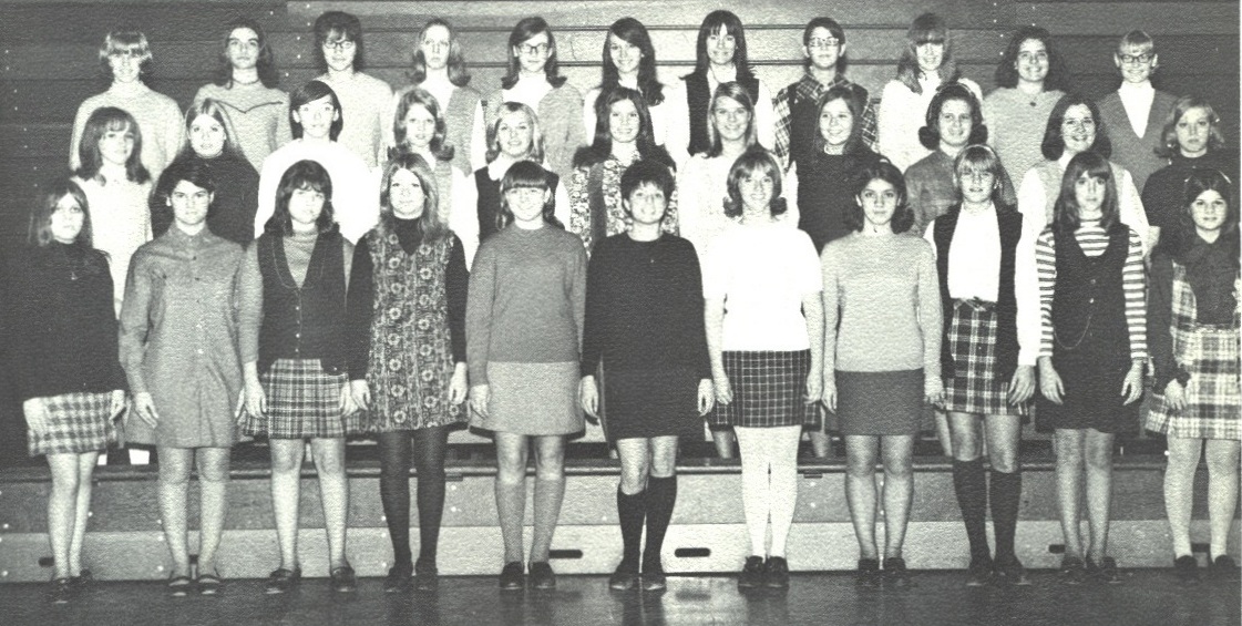 French Club: Row 1: Teri Crane, Martes Demanuele, Pam Anderson, Marcia King, Diane Lareau, Mary Lynn Anhalt, Barbara Conley, Carmela Vaccaro, Lynn Vanderzee, Linda Strahl, Denise Tubich. Row 2: Kathy Boyer, Debbie Mazon, Mariann Kurt, Marilyn Ditter, Linda Bauer, Patty Reeb, Lydia Jones, Edwina Spodark, Cathy Capriglioni, Carey Halsey, Debbie Peterson. Row 3: Debbie Rowley, Becky Hill, Janet Sartini, Karem Boyd, Marian Krismanick, Valerie Zeppi, Kris Stauff, Janet Sterbenc, Rhonda Strahl, Bonnie McDaniel, Kathy Parry. This is Page 41 of the Postscript © Yearbook of Thornton Fractional South High school in Lansing, IL during the 1969-1970 season. |