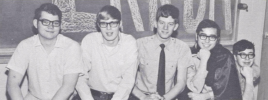 Ferrum Staff: Tom Gleim, Tom Poplawski, Neal Haught, Assistant Editor;Ted Schultz, Editor; Mark Schumann.