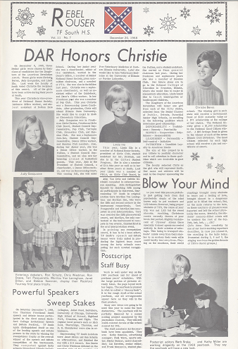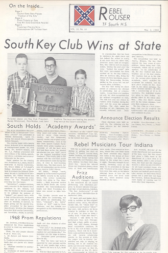 These PDF Files are text searchable, so after you save them to your hard drive, you can search for students' names to your heart's content. Eventually Google will also index the words inside these Rebel Rousers, and you will be able to find them from Google searches. These Rebel Rousers from the year 1968 primarilly.