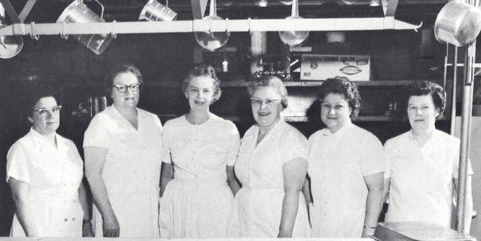 COOKS: Manager, Ruth Getty, Minnie Postma, Ethel McClure, Nell Eenigenburg, Josie White, Jean Bodnar |