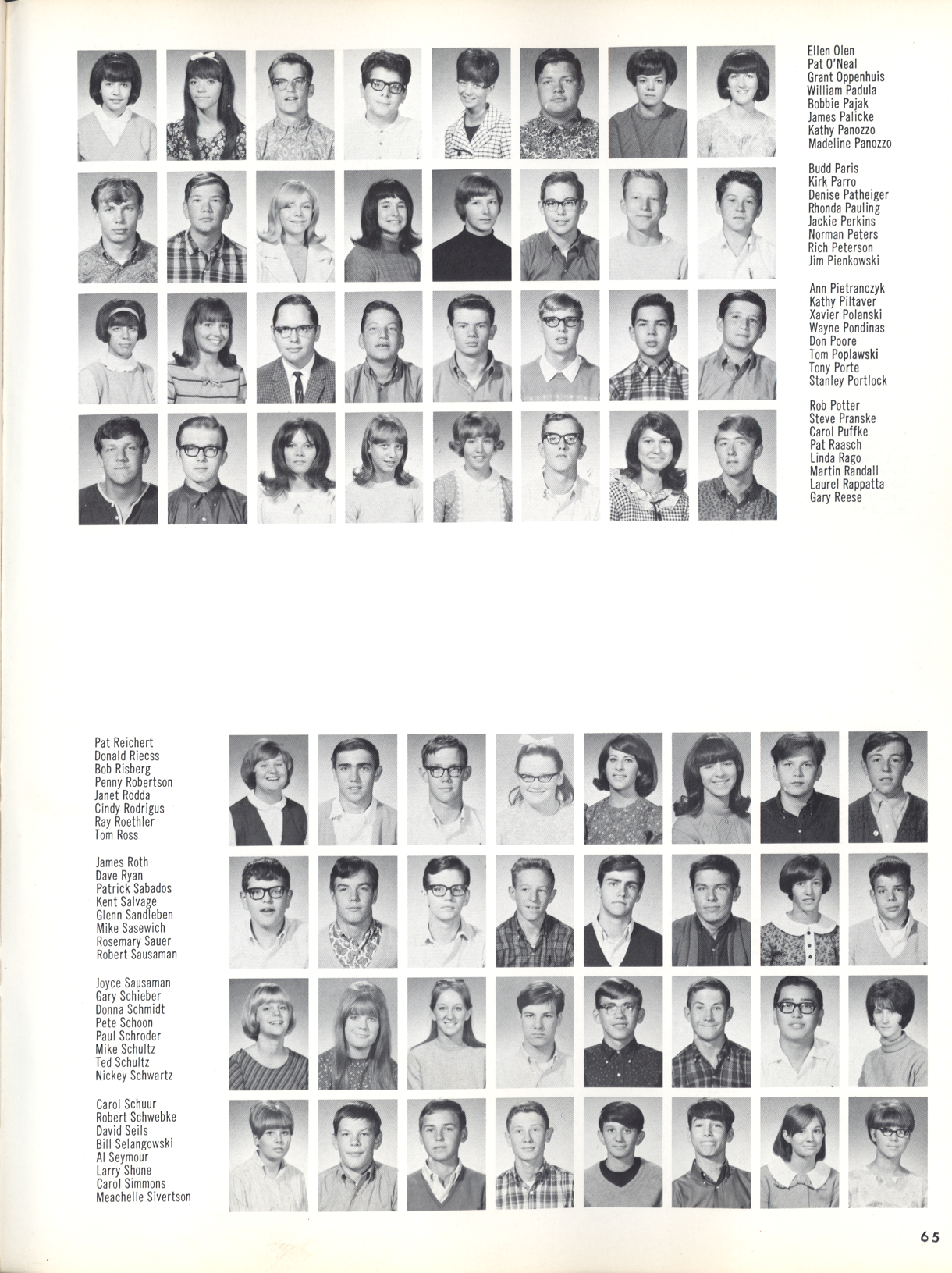 Pictured on Page 65: Ellen Olen Pat O'Neal Grant Oppenhuis William Padula Bobbie Pajak James Palicke Kathy Panozzo Madeline Panozzo Budd Paris Kirk Parro Denise Patheiger Rhonda Pauling Jackie Perkins Norman Peters Rich Peterson Jim Pienkowski Ann Pietranczyk Kathy Piltaver Xavier Polanski Wayne Pondinas Don Poore Tom Poplawski Tony Porte Stanley Portlock Rob Potter Steve Pranske Carol Puffke Pat Raasch Linda Rago Martin Randall Laurel Rappatta Gary Reese Pat Reichert Donald Riecss Bob Risberg Penny Robertson Janet Rodda Cindy Rodrigus Ray Roethler Tom Ross James Roth Dave Ryan Patrick Sabados Kent Salvage Glenn Sandleben Mike Sasewich Rosemary Sauer Robert Sausaman Joyce Sausaman Gary Schieber Donna Schmidt Pete Schoon Paul Schroder Mike Schultz TedSchultz Nickey Schwartz Carol Schuur Robert Schwebke David Seils Bill Selangowski Al Seymour Larry Shone Carol Simmons Meachelle Sivertson