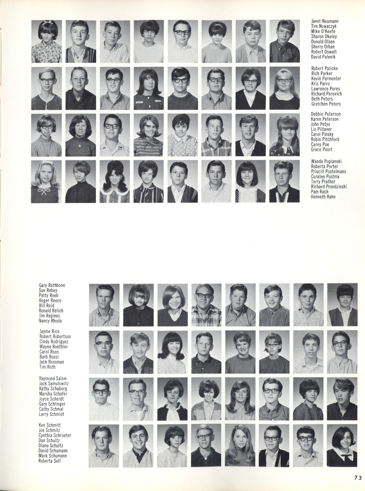 Pictured on Page 73: Janet Neumann Tim Nowaczyk Mike O'Keefe Sharon Okeley Donald Olsen Sherry Orban Robert Oswalt David Palenik Robert Palicke Rich Parker Kevin Parmenter Kris Parro Lawrence Peres Richard Perovich Beth Peters Gretchen Peters Debbie Peterson Karen Peterson John Petyo Liz Piltaver Carol Pinsky Robin Pitchford Carey Poe Grace Poort Wanda Poplanski Roberta Porter Priscill Postelmans Coralee Postma Terry Prather Richard Prondzinski Pam Rach Kenneth Rahn Gary Rathbone Sue Rebey Patty Reeb Roger Reece Bill Reid Ronald Relich Jim Repinec Nancy Rhoda Jayme Rice Robert Robertson Cindy Rodriguez Wayne Roethler Carol Roos Barb Rossi Jack Rossman Tim Roth Raymond Salow Jack Samulowitz Kathy Schaberg Marsha Schafer Joyce Scheidt Gary Schlinger Cathy Schmal Larry Schmidt Ken Schmitt Joe Schmitz Cynthia Schroeter Dan Schultz Diane Schultz David Schumann Mark Schumann Roberta Sell 73