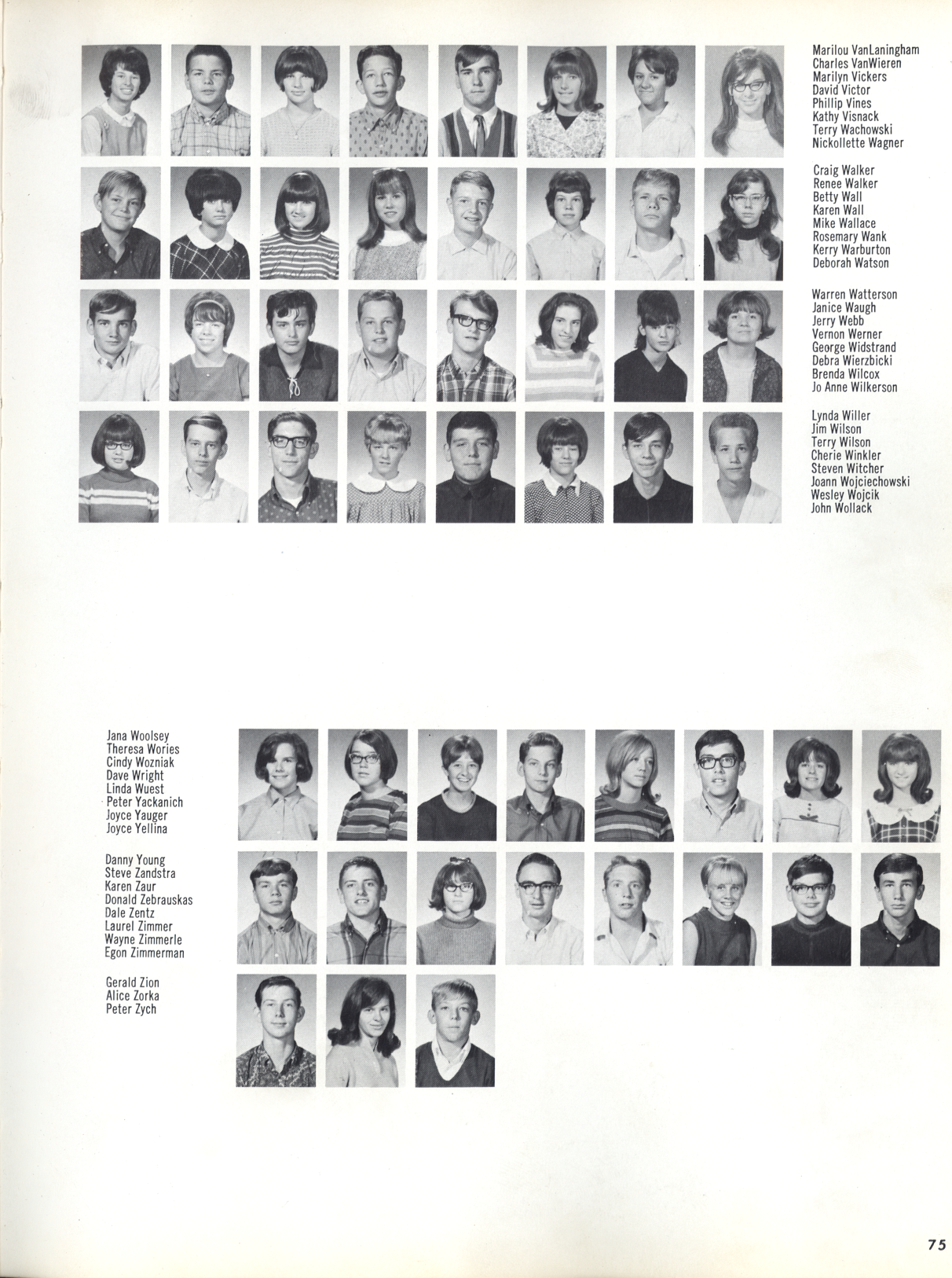 Pictured on Page 75: Marilou VanLaningham Charles VanWieren Marilyn Vickers David Victor Phillip Vines Kathy Visnack Terry Wachowski Nickollette Wagner Craig Walker Renee Walker Betty Wall Karen Wall Mike Wallace Rosemary Wank Kerry Warburton Deborah Watson Warren Watterson Janice Waugh Jerry Webb Vernon Werner George Widstrand Debra Wierzbicki Brenda Wilcox Jo Anne Wilkerson Lynda Wilier Jim Wilson Terry Wilson Cherie Winkler Steven Witcher Joann Wojciechowski Wesley Wojcik John Wollack Jana Woolsey Theresa Wories Cindy Wozniak Dave Wright Linda Wuest PeterYackanich Joyce Yauger Joyce Yellina Danny Young Steve Zandstra Karen Zaur Donald Zebrauskas Dale Zentz Laurel Zimmer Wayne Zimmerle Egon Zimmerman Gerald Zion Alice Zorka Peter Zych