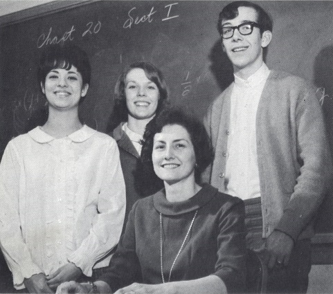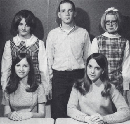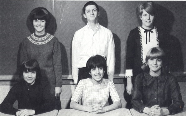 Sophomore representatives - Seated: Sheila Elias, Kathy Aloia, Sue Dombrowski. Standing: Kathy Miller, Bob Oderwald, Jo Ann Jensen. |