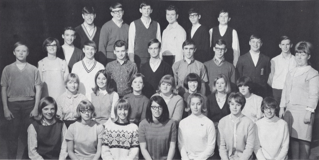 NATIONAL THESPIAN SOCIETY - 1968 TFS Postscript Yearbook p90Dramatics Club | Oliver | Alice in Wonderland | National Thespian Society PDF | German & Latin Clubs | Spanish Club | French Club & Swim Timers | Speech & Debate![]() NATIONAL THESPIAN SOCIETY: - Row 1: Mary Zych, Julie Gustafson, Linda Liesenfelt, Cindy Green, Linda Rap, Debbie Ruth, Sherry Jastrab. Row 2: Roy Bloom, Jackie Perkins, Julie Milliken, Paula Parker, Pat Wozney, Linda Collins, Debbie Freeman, Edith Lange, Pamela Elman. Row 3: Sally Sumpter, Greg Wescott, Brent Brinkman, Jack Weirs, Don Riecss, Mark Inman, John Link, Don Jayne. Row 4: Terry Nesper, Jerry Fritz, Renay Vanderby, Bill Conley, Frank Mazzacco, Al Greenfield, Stanley Portlock. |