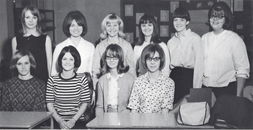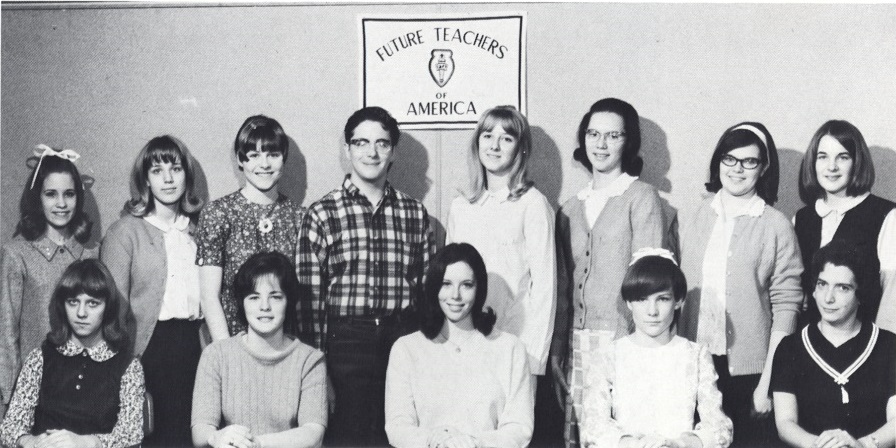 Row 1: Pat Raasch, Secretary; Debbie Speacht, President; Sandy Green, Vice-President; Carol Somerfeld, Recorder; Miss Kaufer, sponsor. Row 2: Peggy Peacock, Nancy Deboer, Paula Dublak, Jan Wezgray, Linda Kruiger, Judy Vajda, Marie Reid, Belinda Love, Not in picture: Edith Lange, Treasurer. FUTURE TEACHERS OF AMEICA: FTA was established to bring future teachers closer to the actual teaching situations teachers face. They engage in various discussions and go on field trips in addition to aiding teachers so that they can become more acquainted to the many facets of teaching. |