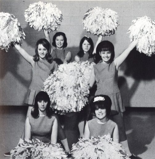 POM POM GIRLS: Row 1: Barbara Suns, Sue Mullins Row 2: Karen Schmidt, Judy Vajda, Karen Du Marco, Pam Foh. |