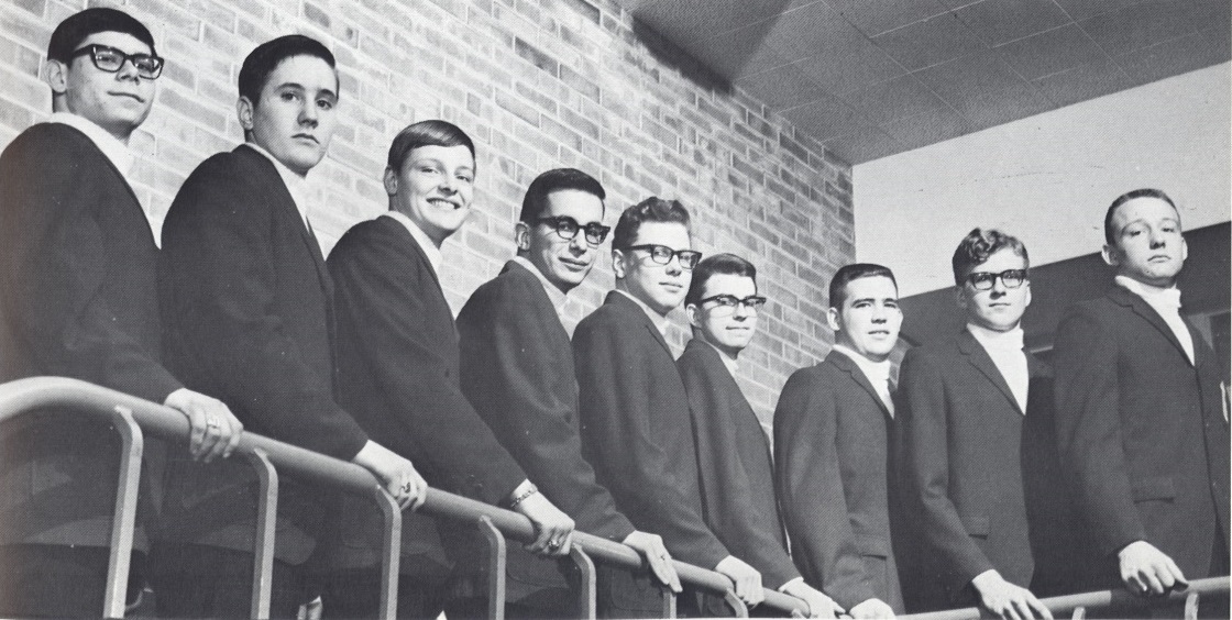 Meistersingers: - Left to right: David Dickenson, Tom Beswick, John Link, Rich Walton, Dave Thomas, Mark Mertes, Dave Gentry, John Wiers, Wayne Brumm. |