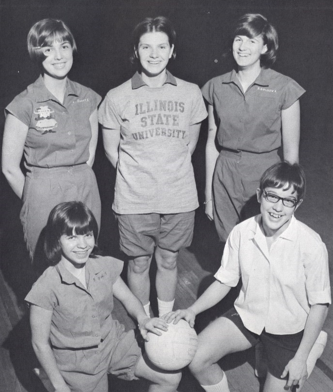 Officers Kneeling: Sheila Elias, Head of Sports; Rene Sterbenc, President. Officers Standing: Sue Schultz, Treasurer; Jean Klacik, Vice President; Shirley Guloska, Recorder. Not in picture: Kathy Wiellamn, Corresponding Secretary; Miss Sharkey, Sponsor. |