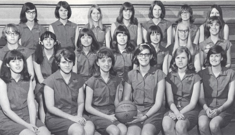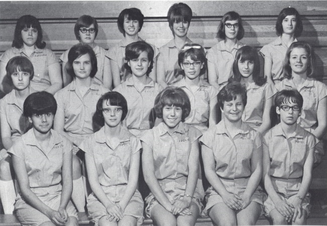 Freshmen left to right: Top: Pat Deflippo, Beth Peterson, Marilou VanLaningham, Lyttia Jones, Debbie Sowinski,