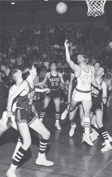 All State and All State honorable mention center Tom Kirsh knocks up two for South. |
