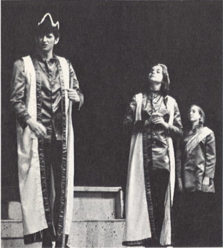 Bill Conley as Claudius and Marilyn Stone as Gertrude seek help for the ailing Hamlet. |