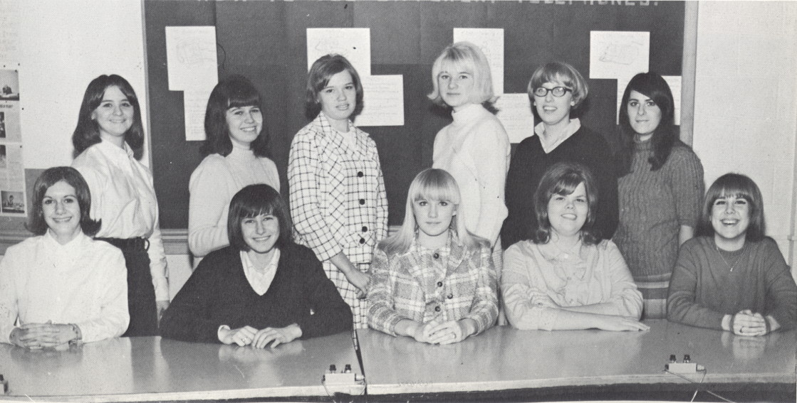 Future Business Leaders of America: seated: Janet Davis, Secretary; Cathy McGrath, Nancy Horvatich, President; Angie Sherman, Laura Merkel. Standing: Louise Kohut, Kathy Bolek, Sherry Nondorf, Ruth Percak, Vice President; Sue Boardman, Betty Lindemann. Not pictured: Debbie Tegmeyer, Treasurer. |