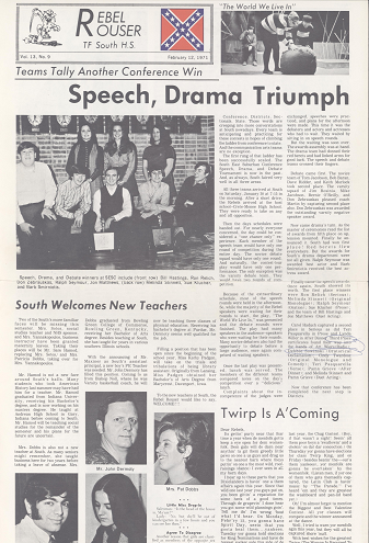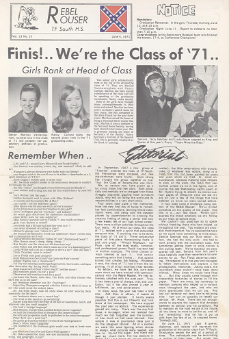 These PDF Files are text searchable, so if you search for "Mark Valco", well, you wont find anything. But on the other hand, if you search for "Tim Koselke," chances are you will find him. Since these pages are so large, it's impossible to fit the whole page in the scan. On some pages I chose to cut a line or two off the bottom. On some pages I chose to cut off the top. Eventually, when the Google and Yahoo spiders make their rounds, it will index the words inside these Rebel Rousers, and you will be able to find them from all the major internet search engines. The Rebel Rousers on this page are from my senior year, September 1970 through June 1971. The previous Rebel Rousers on this website will be organized by specific year, 1967, 1968, 1969, etc. rather than School Season (Sept thru June).
